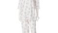 婦人 綿100%SZ天竺フラワーブーケ柄ピンタックフリルパジャマ