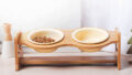 陶器製バンブ―スタンド付きダブルボウル