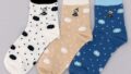 STREAM ぶちネコ 刺しゅう ロークルー 靴下
