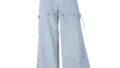 .WORKS レース使いリボン結び切替フレアデニムパンツ