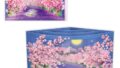 カーブ桜 多目的/春柄立体グリーティングカード 夜桜 桜と春の川