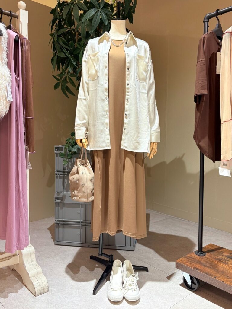 ロゴTシャツやデニムなどの定番アイテムも、ジャケットや光沢素材、華やかなアクセサリーと組み合わせることで、ぐっと大人らしい印象に仕上がります。まだまだ暑さが長引きそうな今年の秋は、アクセサリーで季節感を添えるコーディネート提案も効果的です。