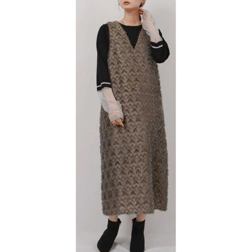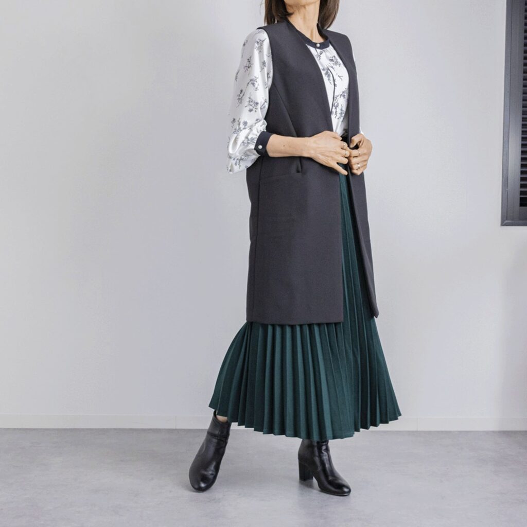 靴やアクセサリーで調整すれば、大人らしく上品に仕上がります。