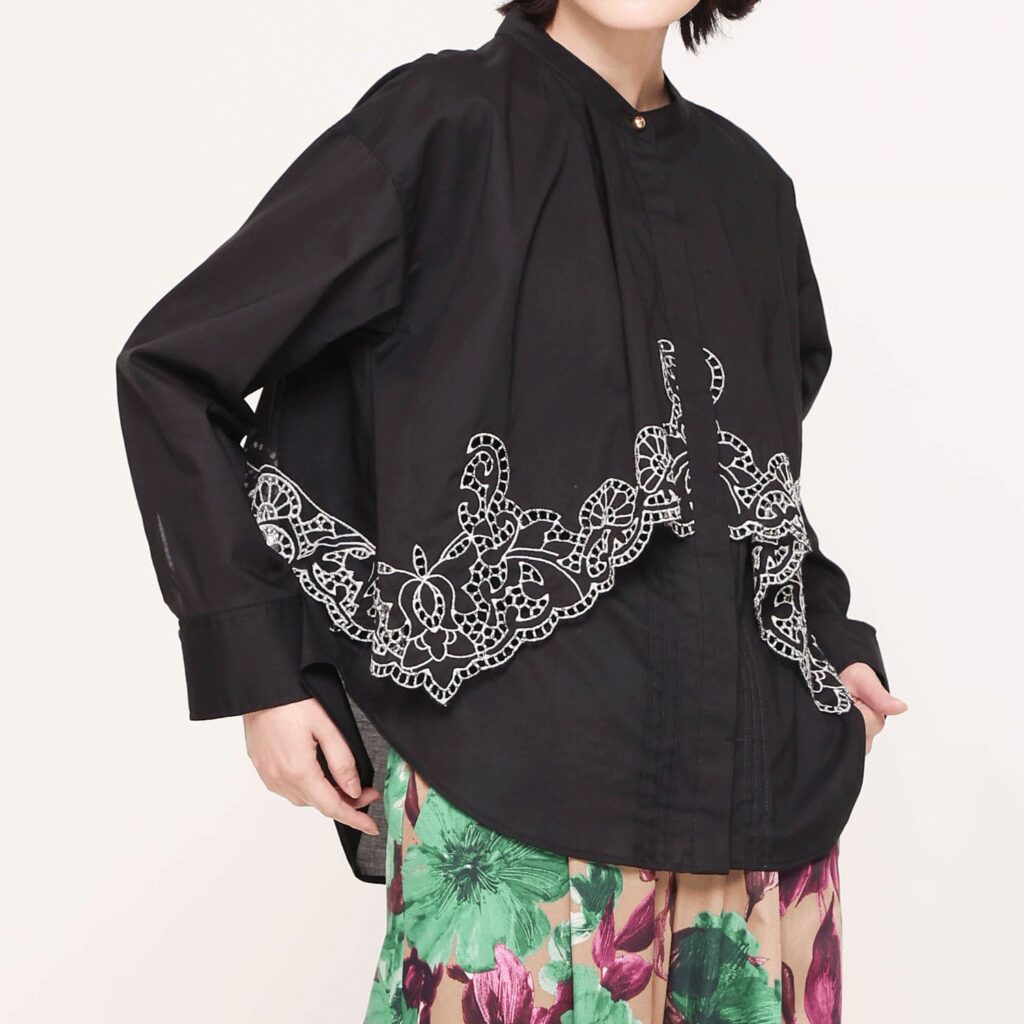 刺繍コットンボイルフラップブラウス