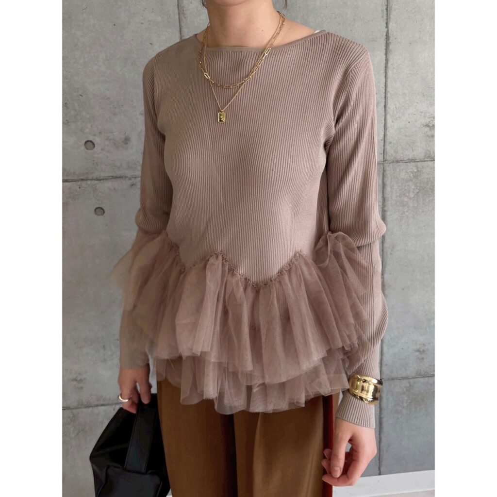 裾チュールリブニット