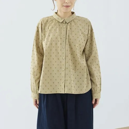 軽やかな素材感と、顔まわりを明るく見せるデザインが、肌に優しく馴染みます。