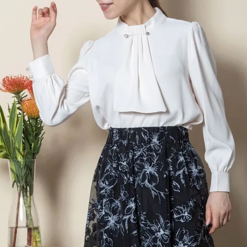 今年は、フリルやタック、ピンタックなどのディテールが豊富で、シンプルながらも華やかさを演出できるものが人気。また、スタンドカラーやボウタイ付きのデザインは、首元にアクセントを加え、上品な印象に仕上げてくれます。特に、シワになりにくい素材や、洗濯機で洗えるタイプは、忙しい毎日にもぴったりです。お出かけにも、ちょっとした集まりにも、ブラウス一枚で「きちんと感」が叶います。