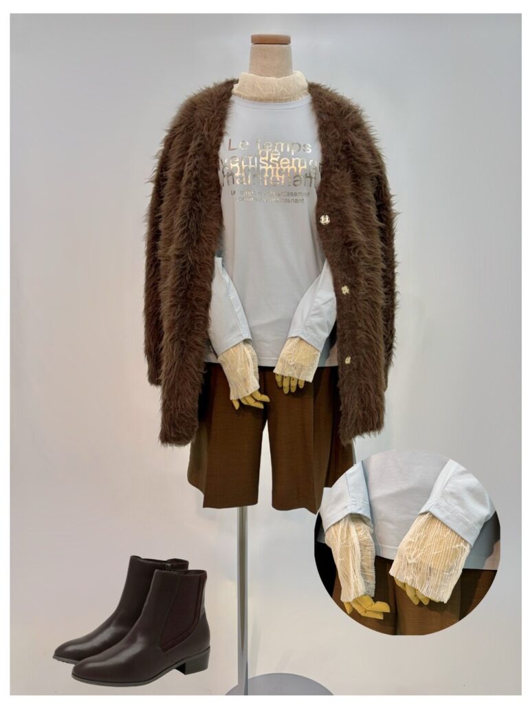インナーや重ね方次第で、カジュアルにもモードにも表情を変えることができるのも、シアー素材の魅力です。