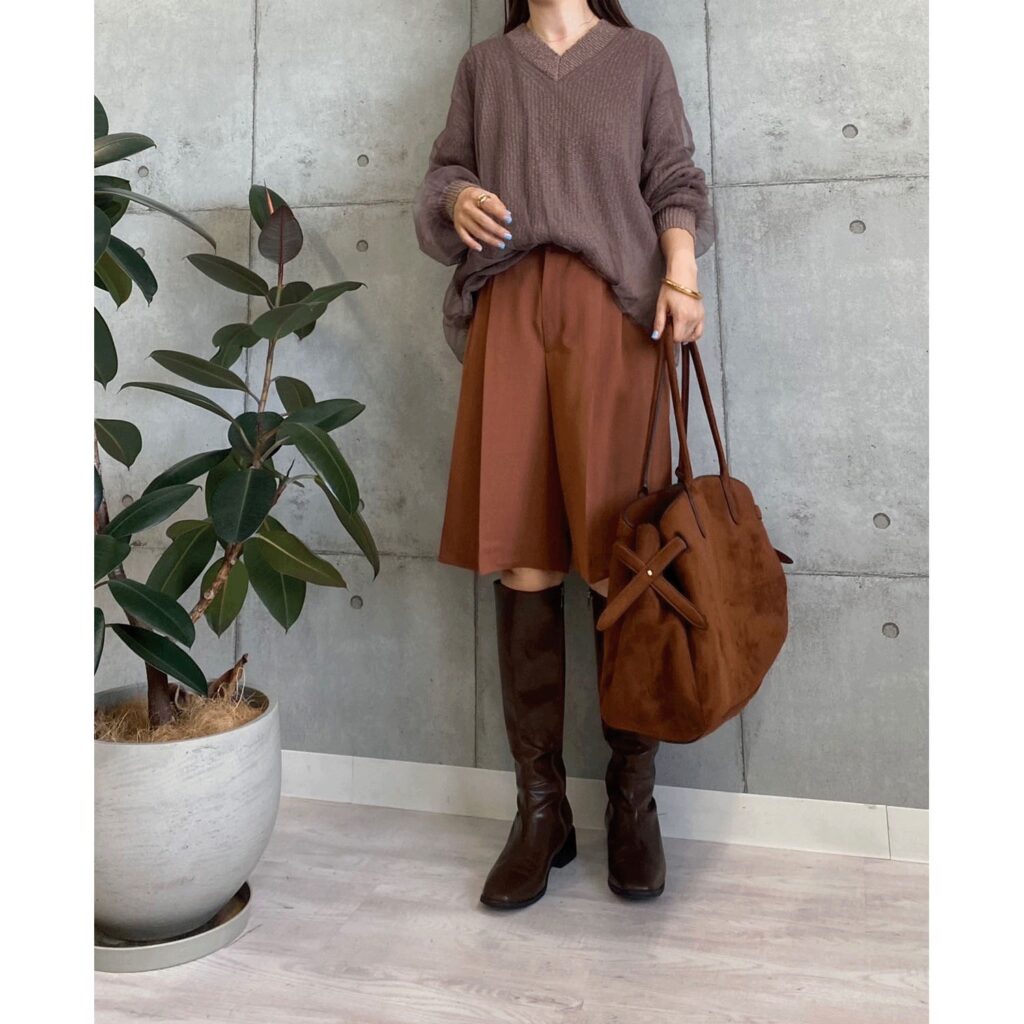 同系色のレイヤードは、異なる素材の組み合わせや色の濃淡で奥行きを出すのが正解。